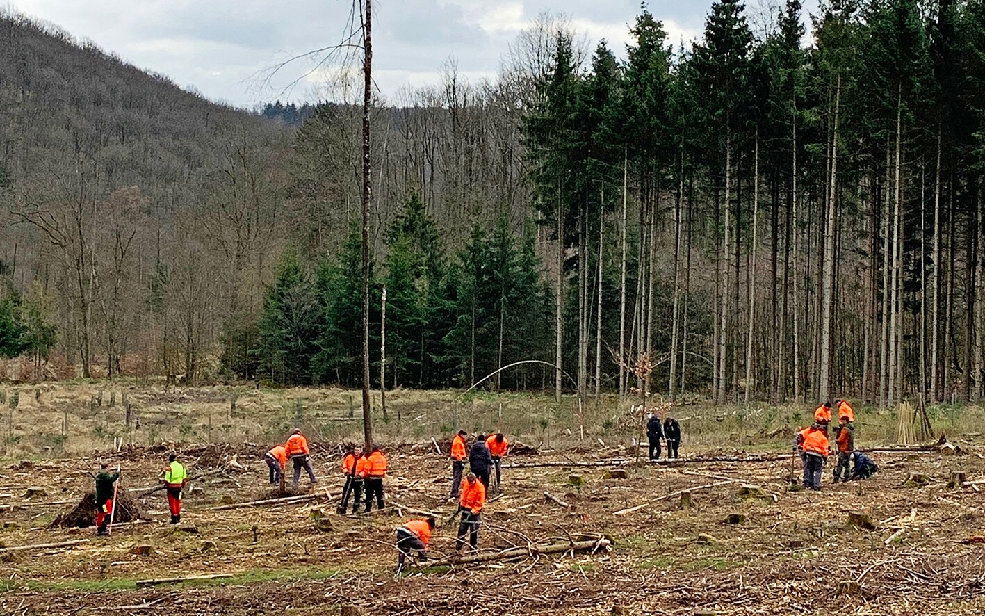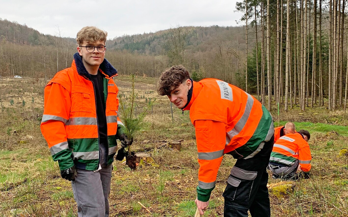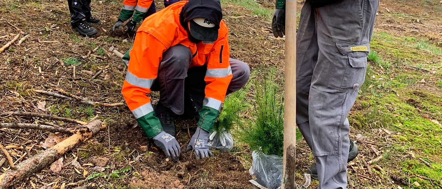 For 46 FRÄNKISCHE Group apprentices and their training supervisors, the start of the new working week was no ordinary one: reforestation was on the agenda in spring-like temperatures. They planted a total of 1,250 trees in the Altershäuser forest.